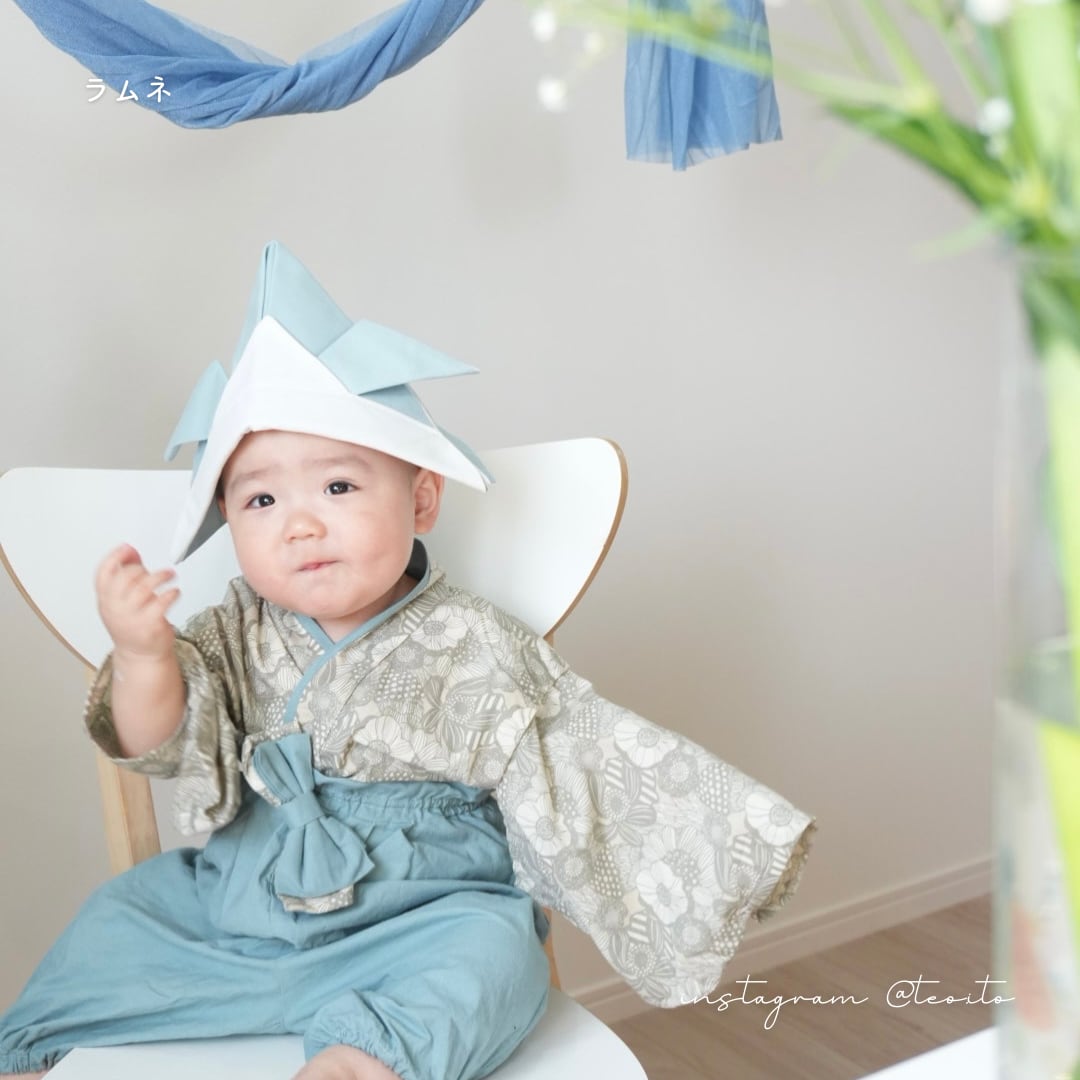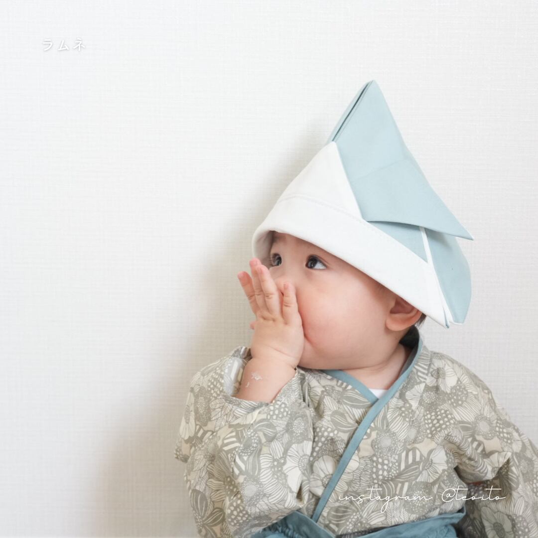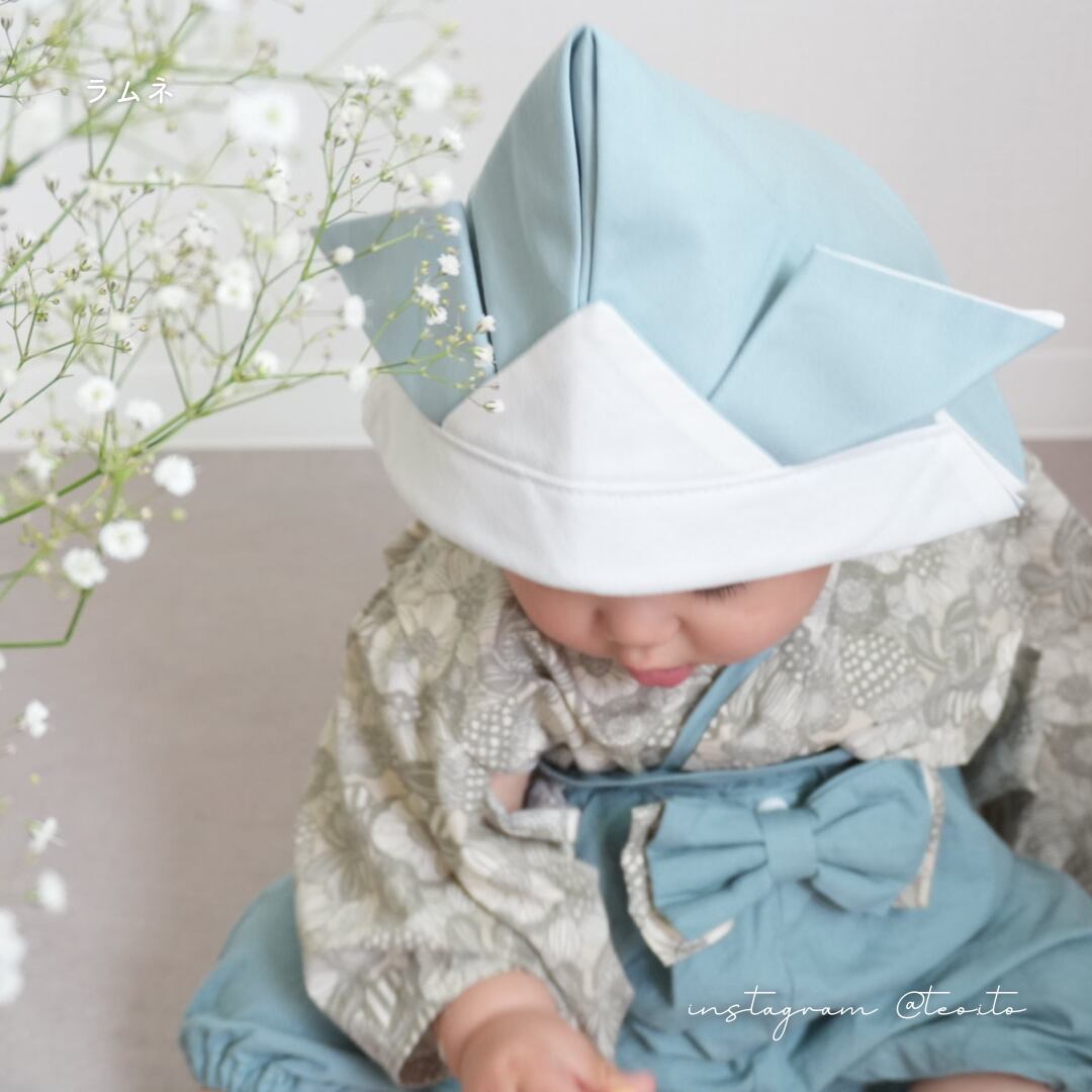 可愛いお洋服にあうよう、シンプルな布かぶとにしました♡⠀