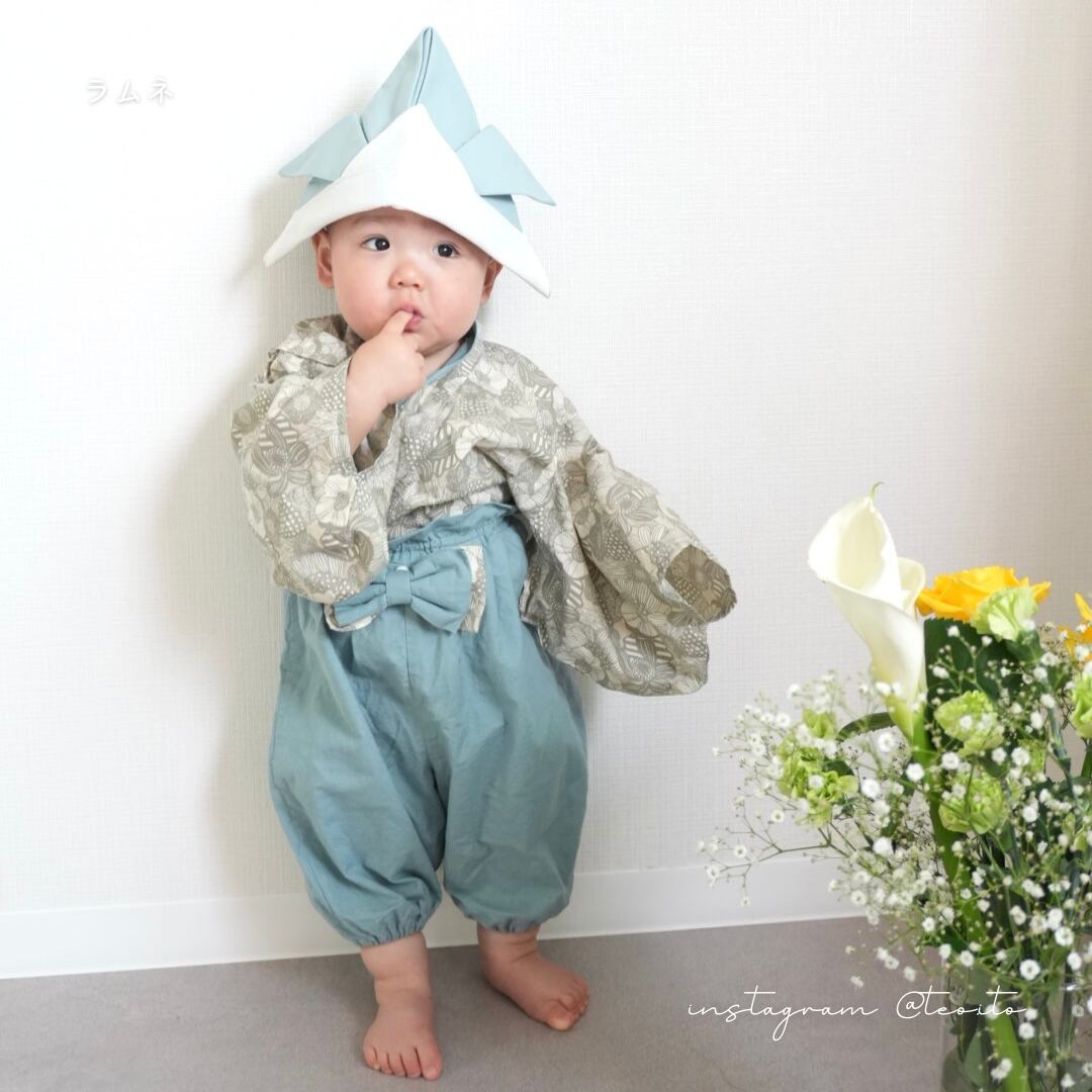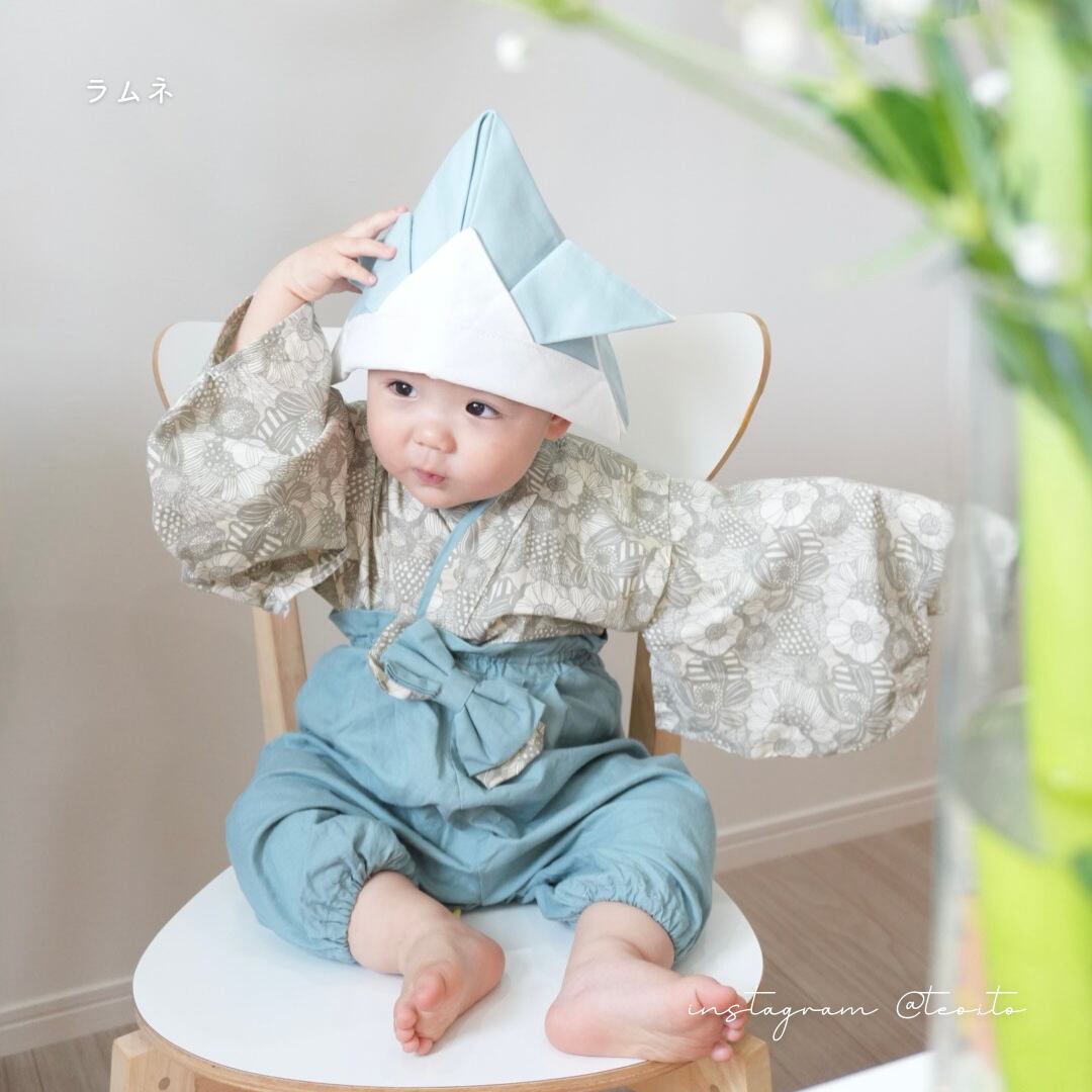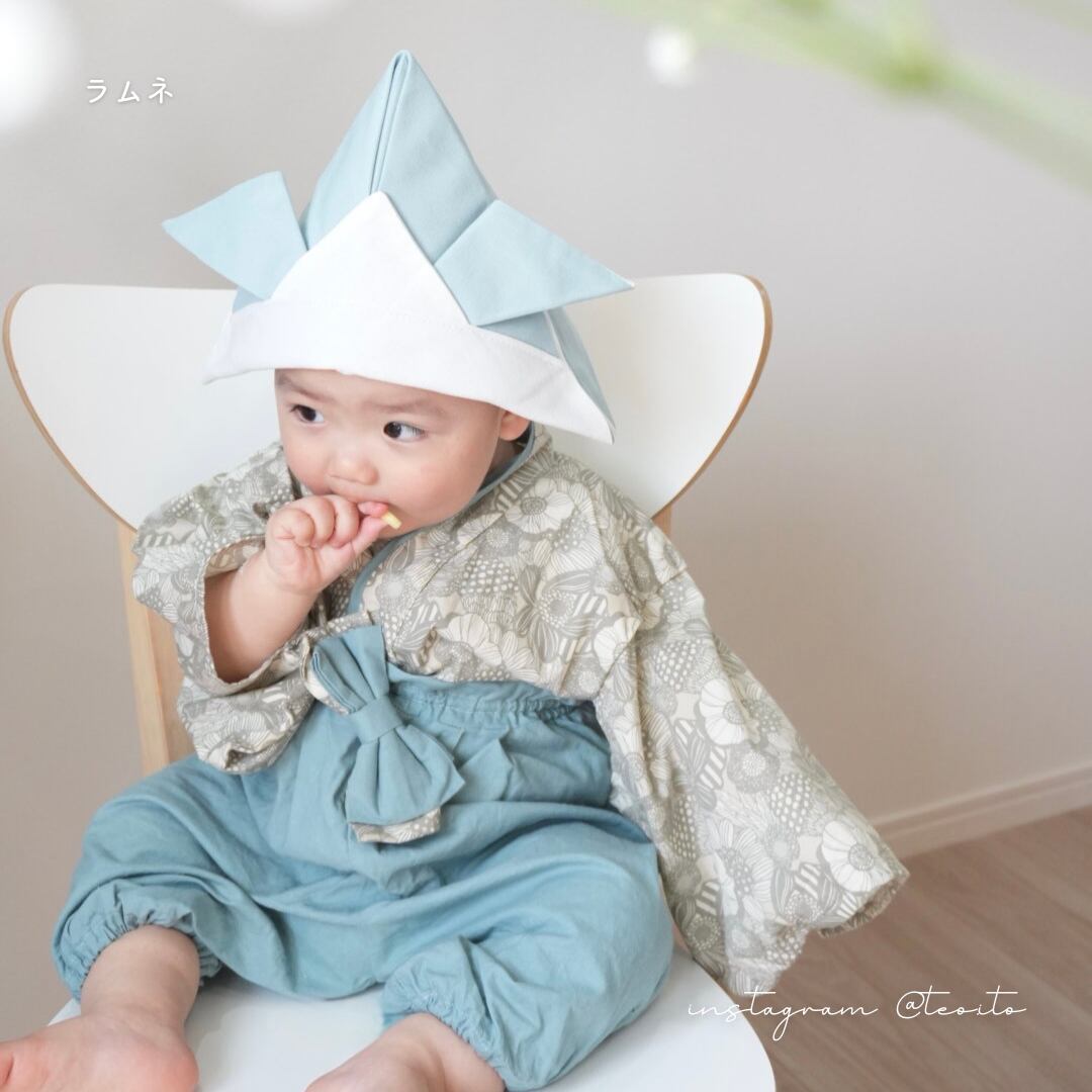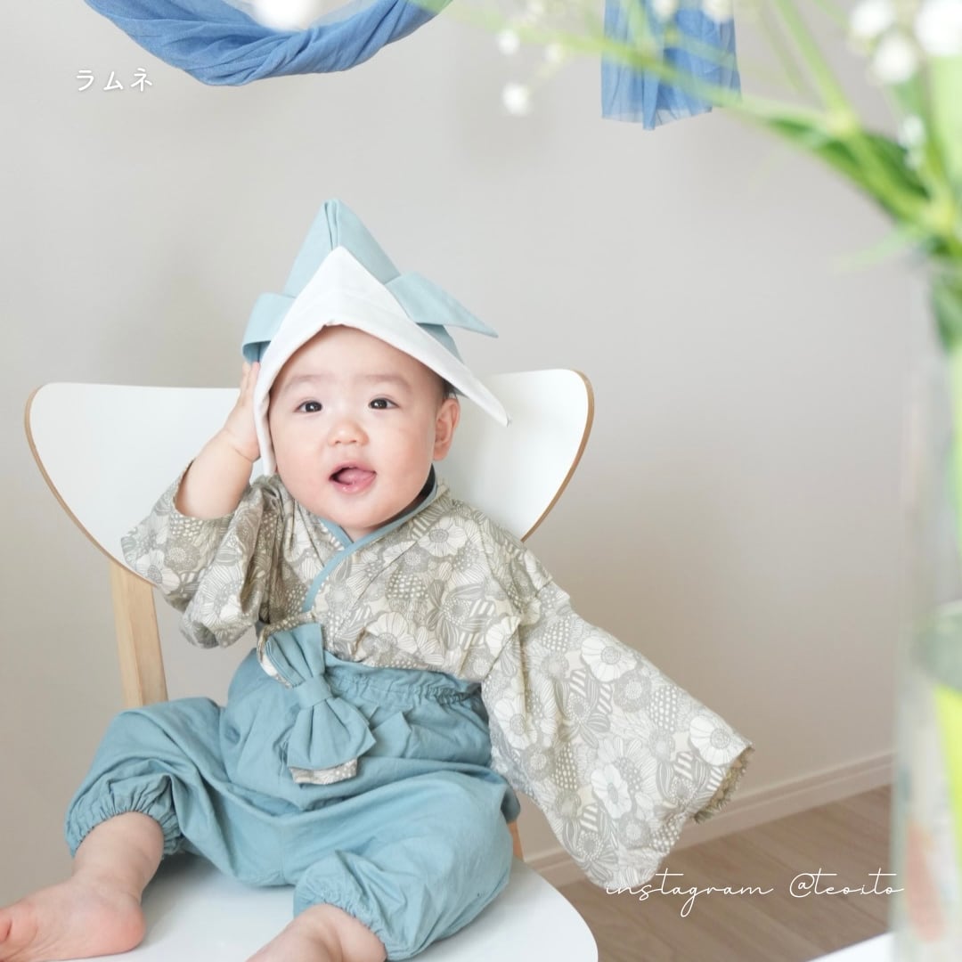 可愛いお洋服にあうよう、シンプルな布かぶとにしました♡⠀